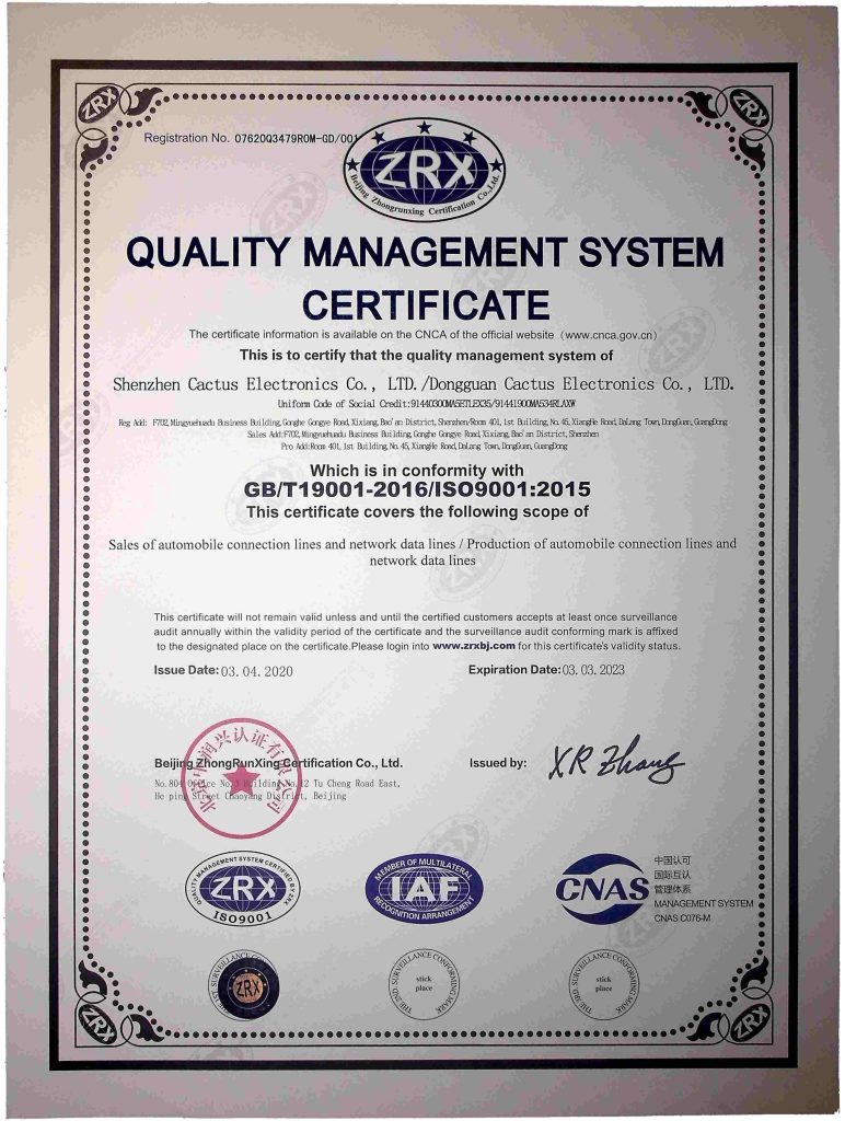 Through the efforts of each department of the company, we have more standardized operation and development. Cactus was certified to ISO9001.